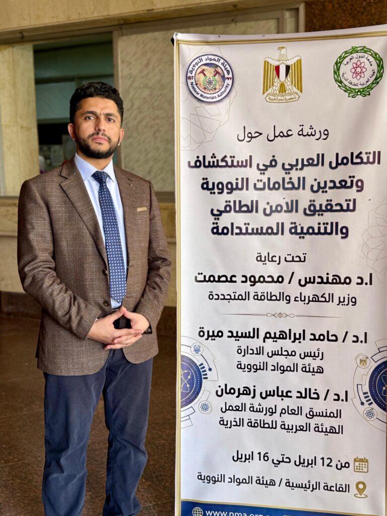 شارك الدكتور عبدالرقيب علي الخمري، مدير عام دائرة التعرض والمختبرات، في فعاليات ورشة العمل التدريبية بعنوان “التكامل العربي في استكشاف وتعدين الخامات النووية لتحقيق الأمن الطاقي والتنمية المستدامة”، والتي عُقدت في جمهورية مصر العربية خلال الفترة من 12 إلى 16 أبريل 2026.